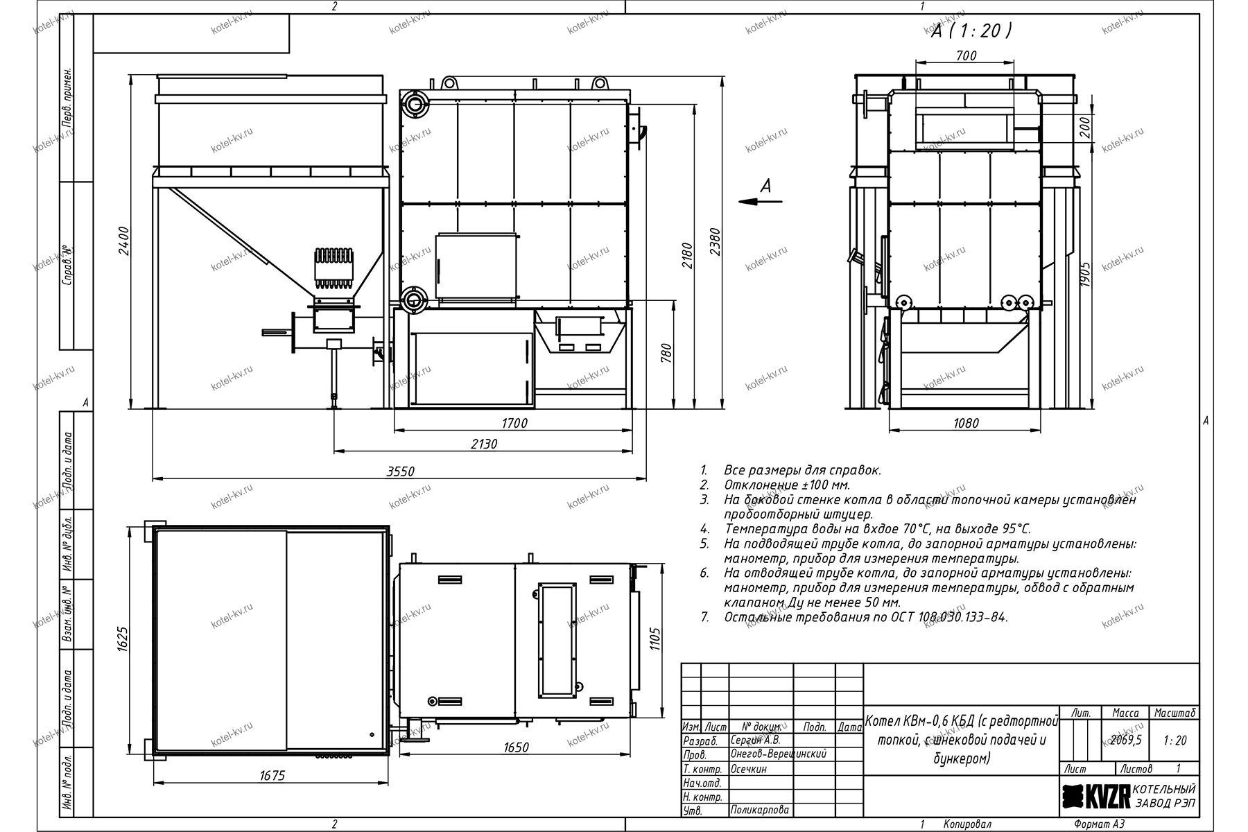 Конструкция автоматического котла на угле 0.6 МВт